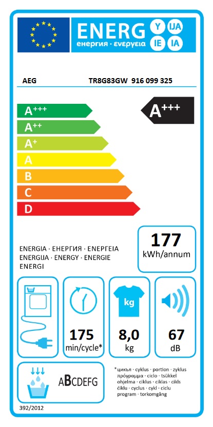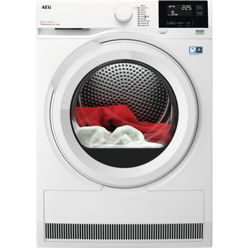 Asciugatrice AEG 8 KG Cladde efficienza energetica A+++, Motore INVERTER, Capacità di carico in 8 Kg, Tipo asciugatura: Asciugatura a condensazione con Pompa di calore, Tecnologia AbsoluteCare™ System, Cesto ProTex XXL, Elettronica OptiSense: adeguamento automatico consumi e tempi in base al carico, Programma asciugatura Lana certificato Woolmark Blue, Programma asciugatura Seta, Alt. 89 cm, Larg. 64 cm, Prof. 68 cm