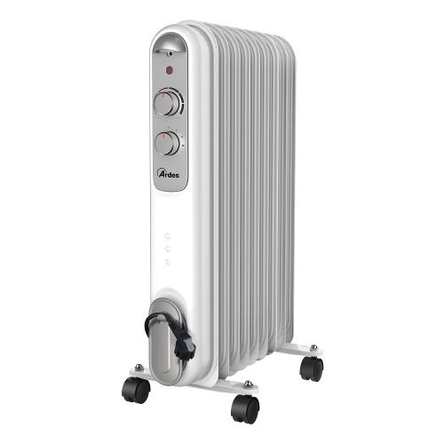 Radiatore ad olio con 9 elementi riscaldamenti. Termostato di regolazione della temperatura. 3 livelli di potenza. Spia di funzionamento. Vano avvolgicavo. Interruttore anti ribaltamento. Sistema di protezione anti surriscaldamento. Resa 60 m³.
