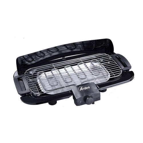 Barbecue elettrico portatile. Leggero e maneggevole, è dotato di griglia removibile extra large in acciaio cromato da 22x45 cm. Paratia di protezione dagli schizzi. Ampia superficie di cottura. Vaschetta per l'acqua, per una cottura senza fumo. Griglia lavabile in lavastoviglie. Regolazione della temperatura. Interruttore di sicurezza. Spia di funzionamento.