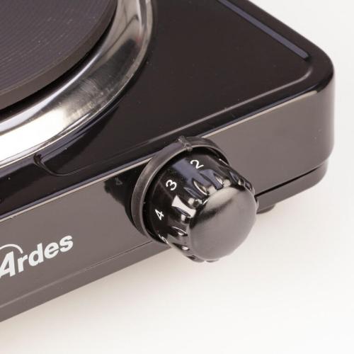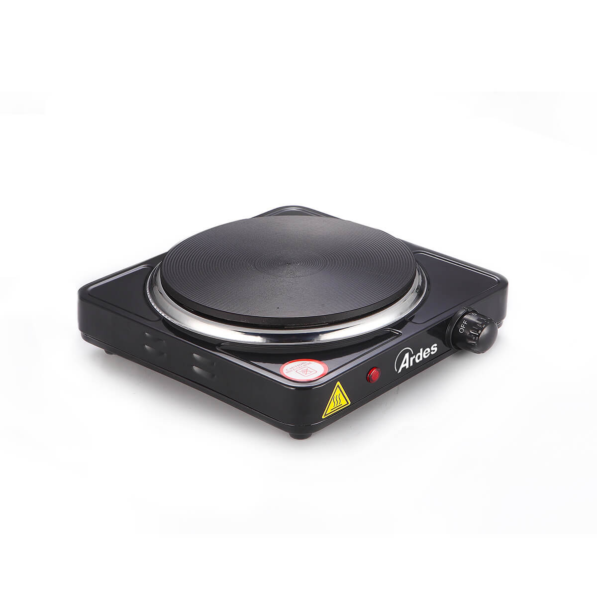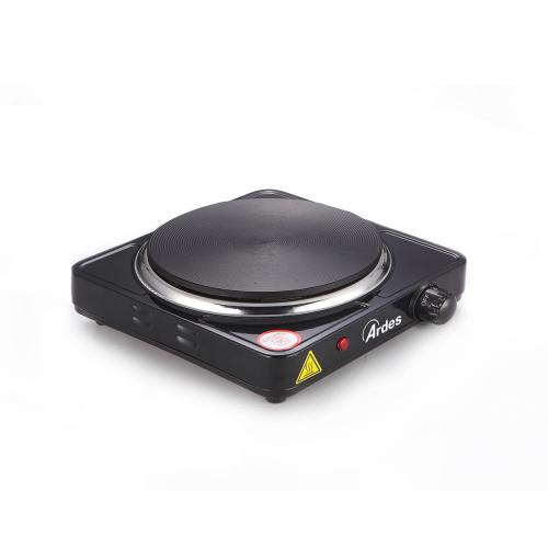 Fornello elettrico in acciaio verniciato con termostato per la regolazione della temperatura. La piastra in ghisa da Ø 18,5 cm trattiene il calore per un lungo periodo a fornello spento, consentendo un notevole risparmio energetico. Spia di funzionamento. Piedini antiscivolo. Potenza: 1500W.