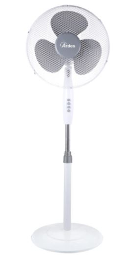 Ventilatore a piantana Ø 40 cm, pala e dettagli grigi, griglia a nido d’ape, oscillazione laterale automatica. Potenza 40W, 3 velocità, base tonda