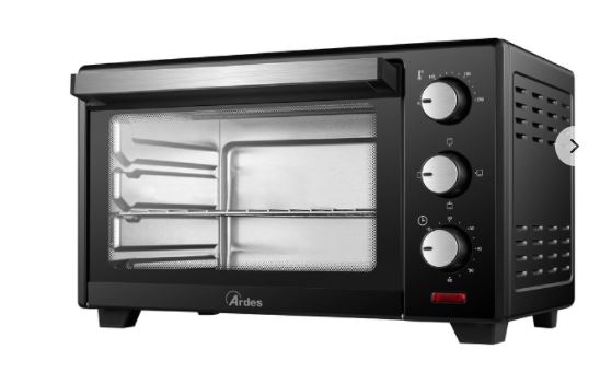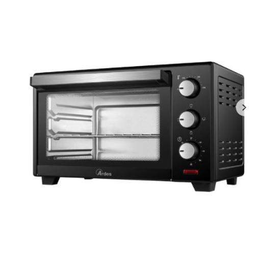 Forno elettrico con grande capienza, ottima alternativa al forno da incasso. Design moderno ed elegante. Termostato multiposizione regolabile da 100° fino a 230°C. 3 funzioni di cottura: sopra, sotto, sopra + sotto. Timer 60 minuti con spegnimento automatico e segnale acustico di fine cottura. Le diverse funzioni lo rendono molto versatile e semplice da usare. Porta con doppio vetro. Spia di funzionamento. Accessori in dotazione: leccarda e griglia.