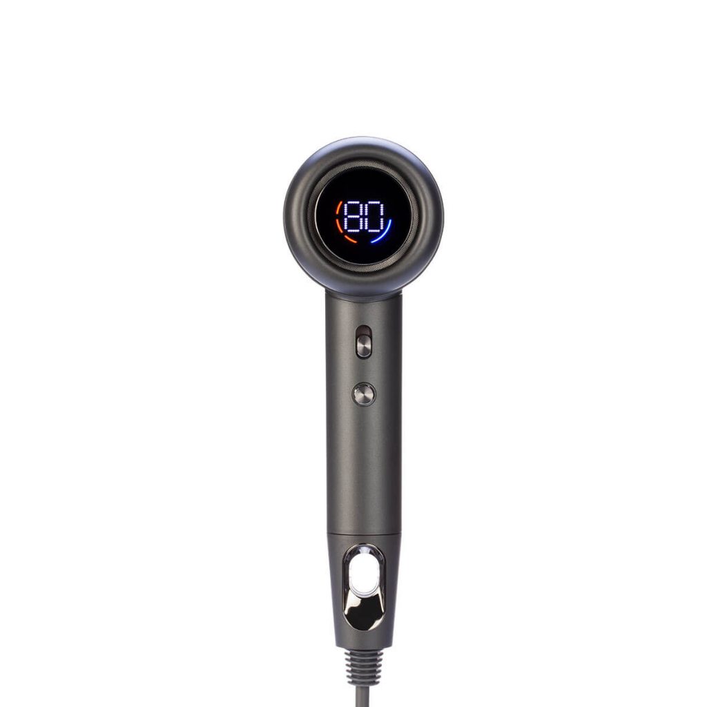 Asciugacapelli ad alta velocità con concentratore e diffusore. Display digitale LED. 2 velocità e 5 impostazioni di calore. Potenza max 1800W.