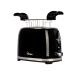 Tostapane 2 fette con pinze in acciaio inox. Timer con 7 livelli progressivi di tostatura. Funzioni di riscaldamento per scaldare toast già fatti, scongelamento per tostare il pane congelato senza bruciarlo e interruzione di cottura. Vassoio raccogli briciole removibile per una facile pulizia. Piedini antiscivolo. Con avvolgicavo, facile da riporre.