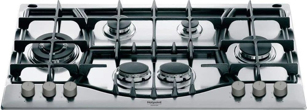 PIANO COTTURA HOTPOINT 90 CM 6 FUOCHI INOX GRIGLIE IN GHISA