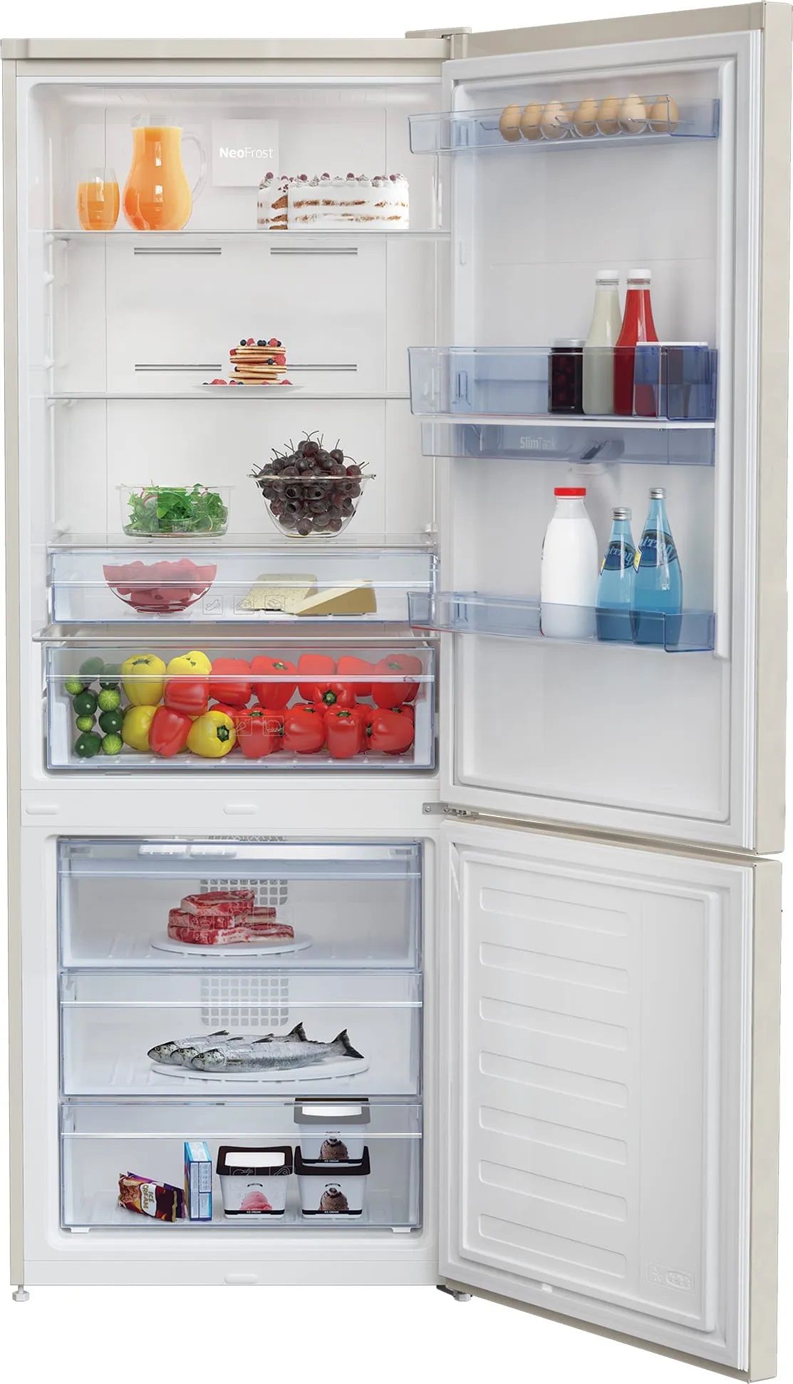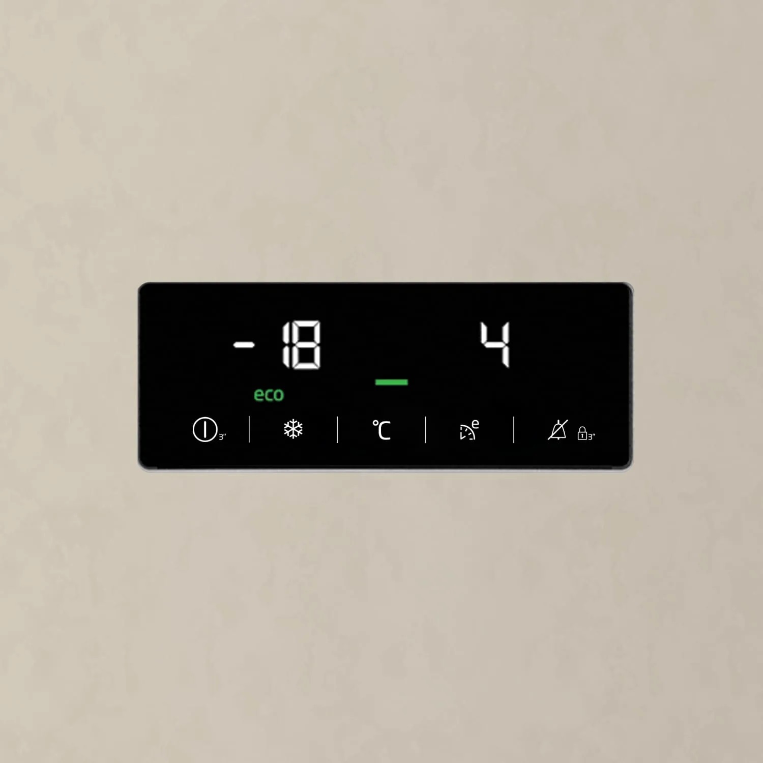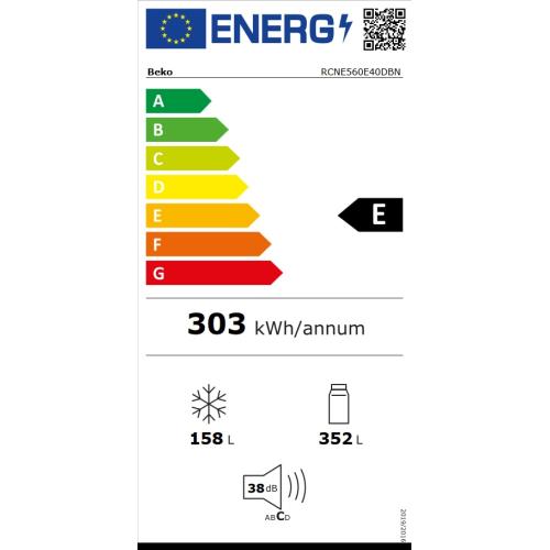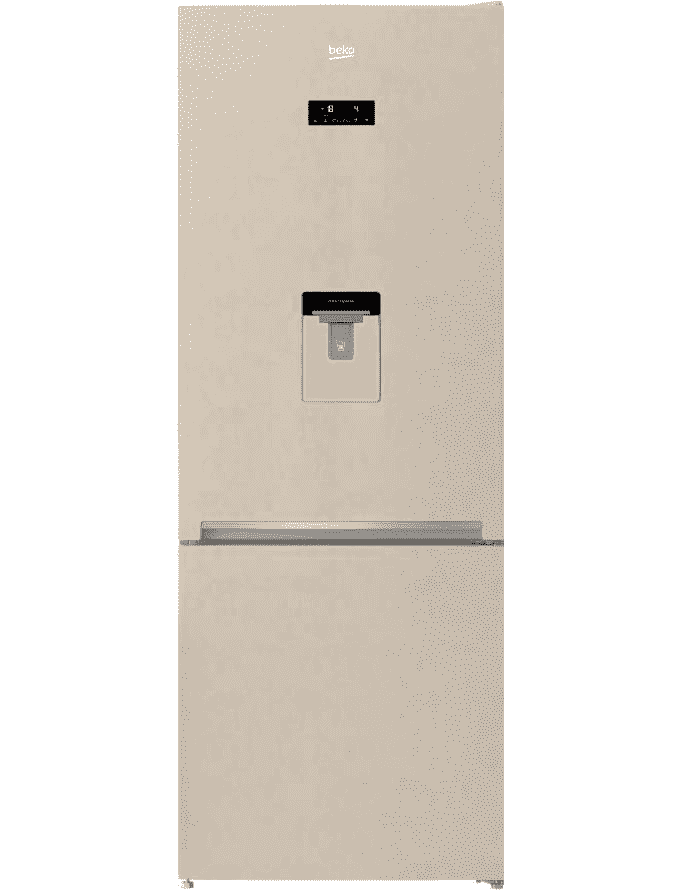 Frigorifero BEKO combinato, 2 porte, no frost, Capacità frigo 352 lt, Classe energetica "E", Autonomia black-out 24 h, Compressore ProSmart inverter, Display LED, 2 ripiani cristallo infrangibile, Modalità vacanza, Dispenser Acqua con SlimTank, Porta reversibile, Apertura a filo muro SmoothFit,