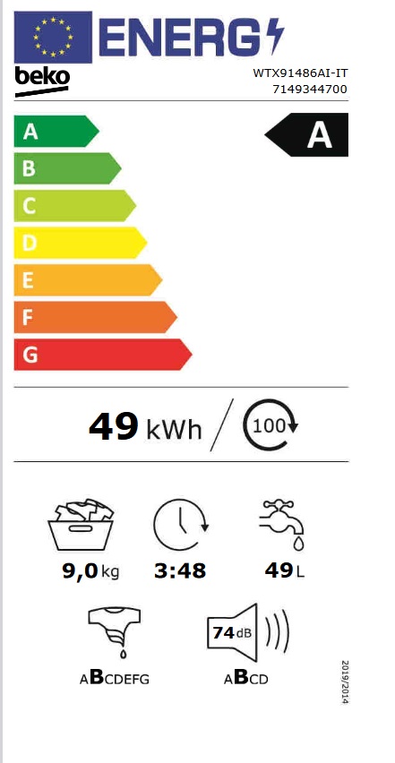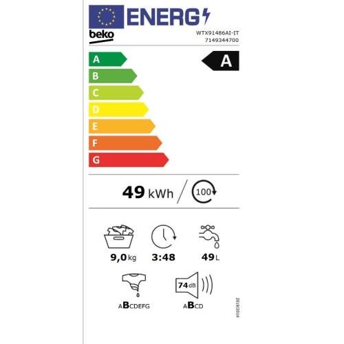 Lavatrice - Carica frontale - Libera installazione (FS) - Capacità 9 Kg - Centrifuga max 1400 Giri - Classe energetica A - Programmi 15 - Con tasto partenza ritardata - Programma Hygiene+ Programmi da App: Quotidiano + Tende + Intimo + Giocattoli + Asciugamani - Con controllo remoto APP