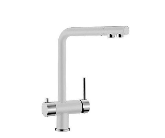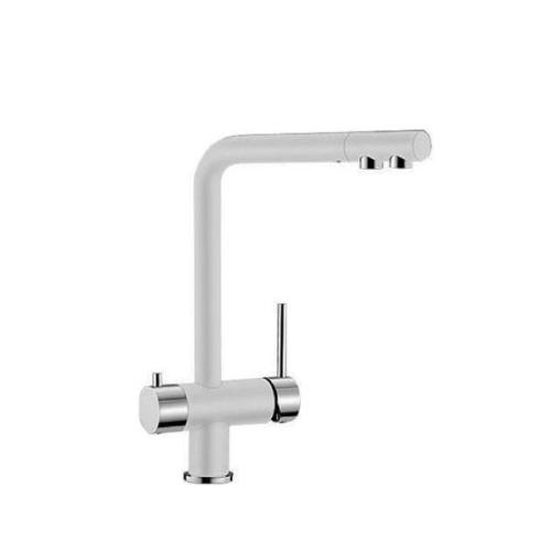 Orientabile fino a 360° Diametro foro per miscelatore: 35 mm Dotato di cartuccia ceramicaFiltri di depurazione non forniti 3 flessibili da 450 mm con dado da 3/8" per una facile installazione Rompigetto brevettato per una marcata riduzione dei depositi di calcare Contropiastra di rinforzo per una maggiore stabilità