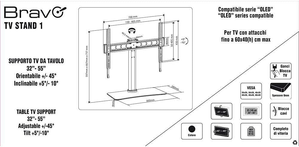 Bravo tv stand 1 supporto da tavolo 32-55''