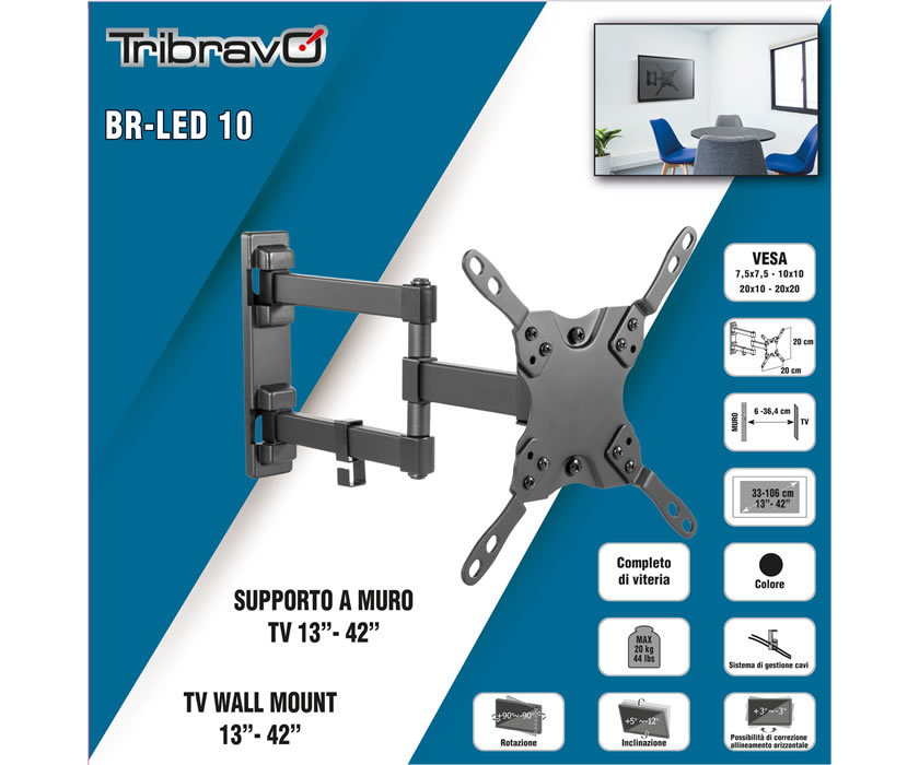Supporto da parete studiato per televisori LCD da 13" a 42".
