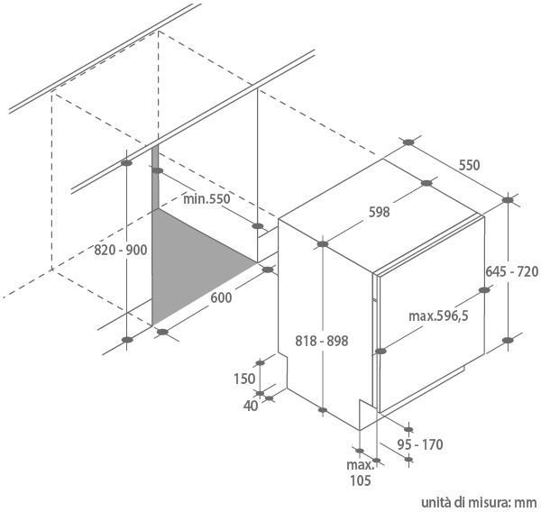 Lavastoviglie incasso Candy A scomparsa totale, Numero di coperti: 13 coperti, Classe efficienza energetica: F, Classe emissione rumore: D, Emissione acustica: 53 dB., Consumo di acqua per ciclo: 11,7 L, Consumo energetico per 100 cicli: 103 kWh, 2 cestelli cestino per posate, 6 programmi, programma rapido, partenza ritardata, asciugatura a condensazione, Tipo di regolazione dei piedi: Posteriore