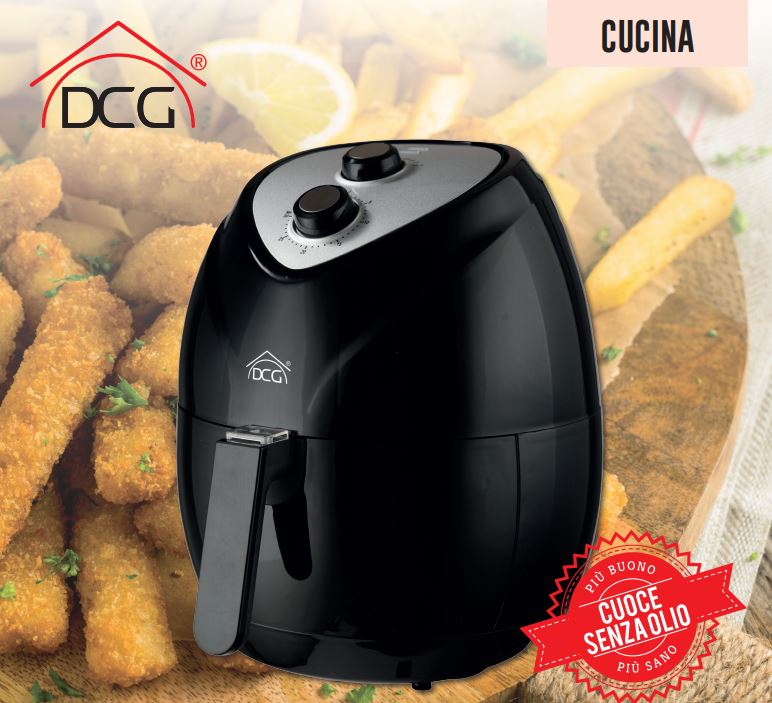 Termostato regolabile da 80 a 200°C Funzione cottura perfetta in 30 minuti Protezione contro il surriscaldamento Cestello anti aderente Capacità cestello 3,5 L Pareti e maniglia atermiche Piedini anti scivolo 220-240V~ 50/60Hz 1300-1500W
