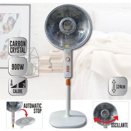 Potenza massima 900W ,2 gradi di calore ,Versione piantana ,Elementi riscaldanti in carbon crystal ,- riscaldamento molto veloce ,Tasto anti ribaltamento ,220-240V~ 50/60Hz 900W