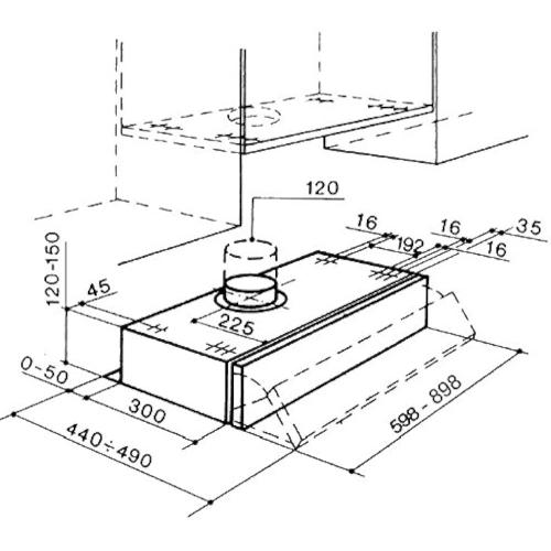 La cappa 152 consente una facile installazione in qualsiasi tipo di pensile. L'antina frontale in posizione di riposo si allinea perfettamente al pensile in un rigoroso equilibrio di linee. Installabile in modalità filtrante o aspirante.