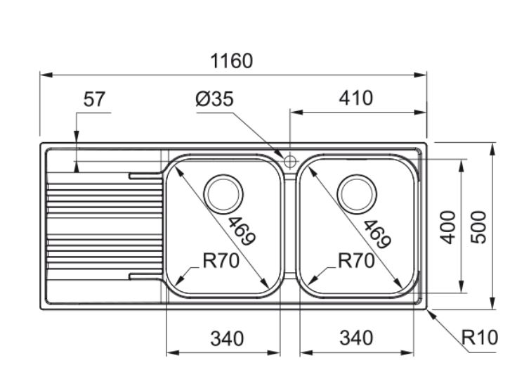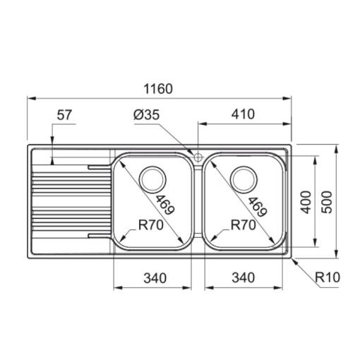 Dim. vasca 2 : da dx a sx 340 mm Dim. vasca 2 : fronte/retro 400 mm Vasca 2 : profondità 180 mm