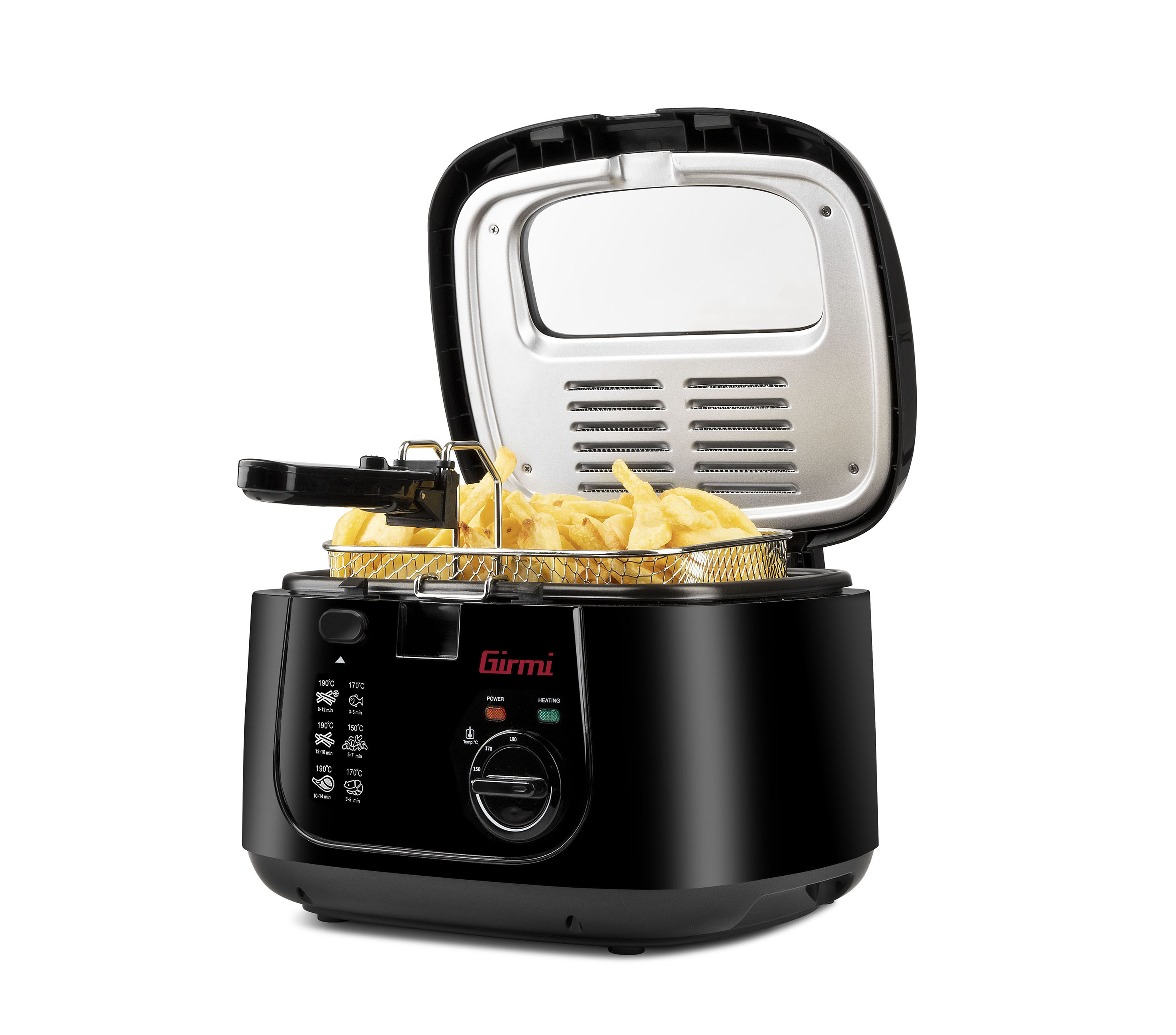 FG21 è lo strumento ideale per ottenere un fritto sempre fragrante e delizioso, senza sporcare e lasciare odori in casa. Veloce da pulire grazie al contenitore dell’olio antiaderente, FG21 è equipaggiata con termostato regolabile e coperchio anti-spruzzo con oblò di controllo. Il cestello in acciaio inox alimentare garantisce la massima sicurezza nel contatto con gli alimenti