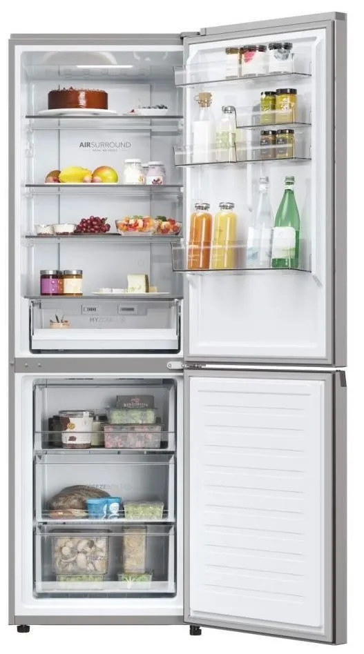 Haier 2D 60 Serie 3 HDPW3618DNPK(IT). Capacità netta totale: 352 L. Cerniera porta: Destra. Classe climatica: SN-T, Emissione acustica: 35 dB. Capacità netta frigorifero: 235 L, No Frost (frigorifero), Sistema Multi-Airflow (frigorifero), Luce interna, Numero di ripiani frigorifero: 4. Capacità netta congelatore: 117 L, Capacità di congelamento: 1 kg/24h, No Frost (congelatore). Classe efficienza energetica: D, Consumo energetico annuo: 214 kWh. Colore del prodotto: Argento