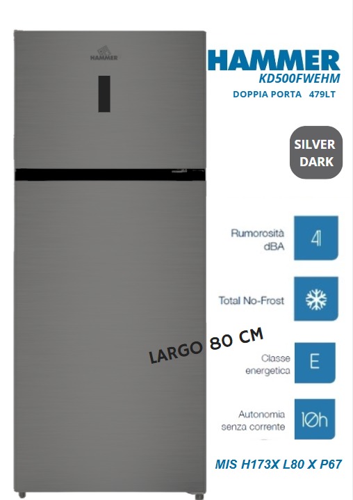 FRIGORIFERO DOPPIA PORTA LARGO 80 CM TOTAL NO FROST DARK SILVER DISPLAY ALTO 173CM