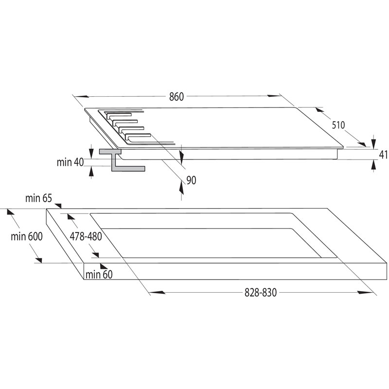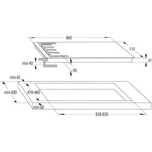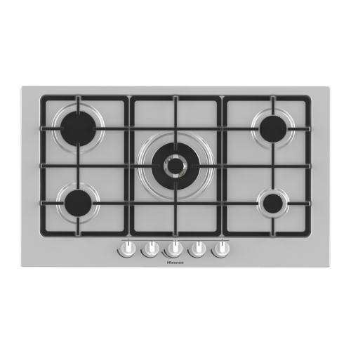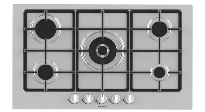 Piano cottura a gas 5 fuochi Accensione elettrica fuochi Tripla corona Piano in acciaio inox Griglie ghisa Comandi frontali Larg. 86 cm prof. 51 cm.