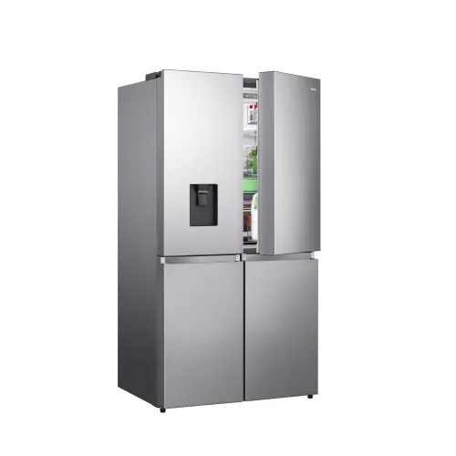 HISENSE - Frigorifero Side by side 4 porte RQ758N4SWSE Libera Installazione, Classe Energetica E, 606 L - Acciaio Inox