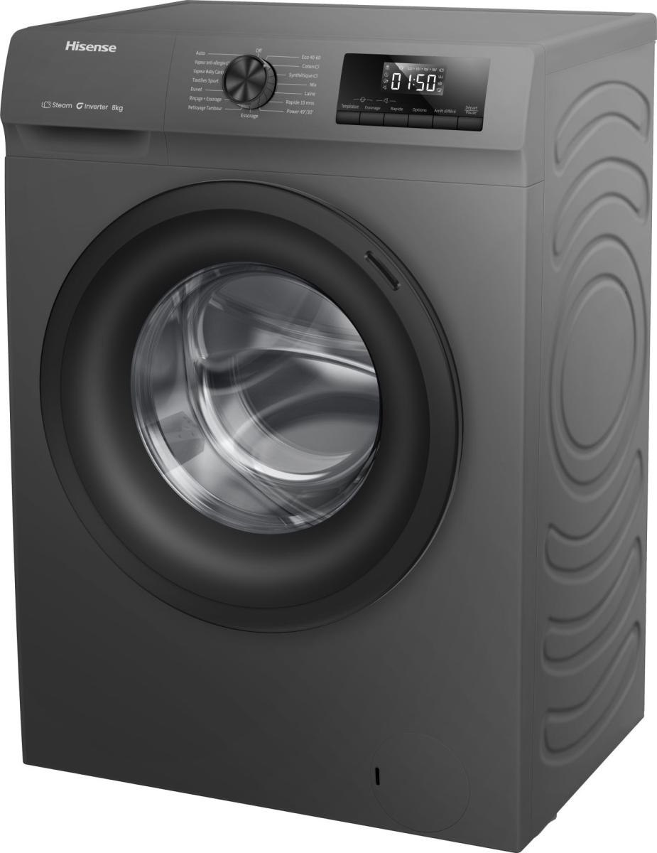 Hisense lavatrice 8kg 1.4g cl.a vapore silver
