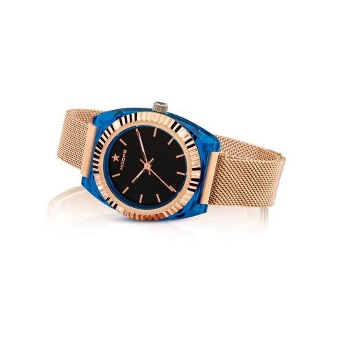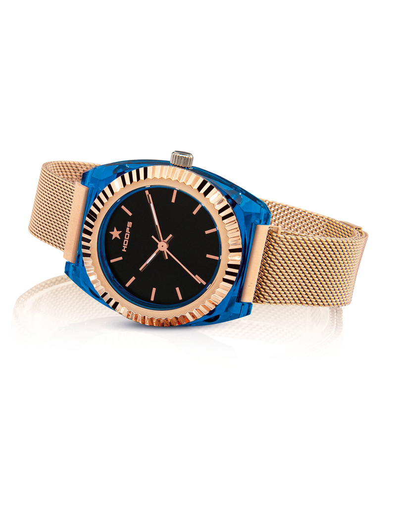 Orologio Donna HOOPS SAINT TROPEZ 2631L-05 CASSA TRASP BLU-ROSE GOLD/CINTURINO METALLO MAGLIA MILANO ROSE GOLD/QUADR NERO