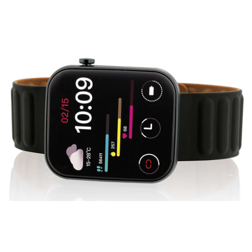 Orologio smartwatch unisex della collezione h*smart di Hoops. Orologio smartwatch con cassa in metallo e finitura opaca. Dimensioni: larghezza 37mm - lunghezza 43 mm - altezza 9 mm. L'orologio ha un display oled ad alta luminosità e risoluzione. Il cinturino è in pelle gommata soft touch con chiusura calamitata nero, misura ansa: 22mm. La resistenza all'acqua è di 2 atm. Il movimento è smart high tech con le seguenti funzioni: datario, sport, steps, monitoragio sonno, funzioni salute (pressione sangue, ossigenazione sangue ecc. ), indicazione meteo, notifiche, fino a 5 sveglie impostabili, trova telefono, e' possibile scegliere tra le foto presenti nella galleria ed impostarle come sfondo. Ogni orologio viene fornito con un cinturino extra in silicone. La referenza è hs-z15-01