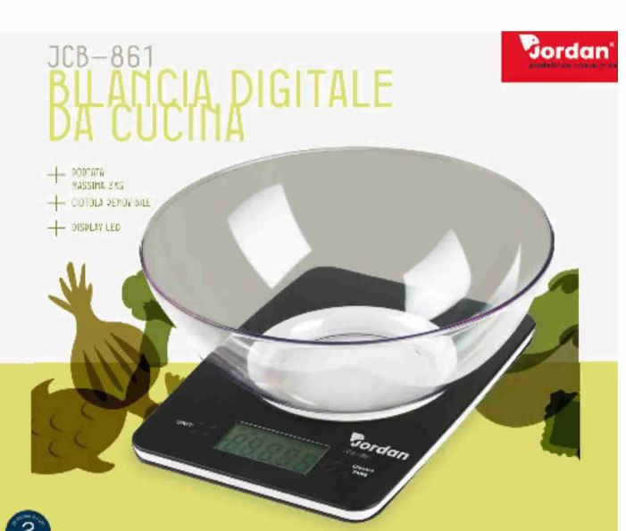 Ciotola da 1200 ml, lavabile in lavastoviglie; Display led retroilluminato blu; Portata massima 3 kg, graduazione 1 g; Commutazione di g, kg, Ib; Adatta per la pesatura di alimenti o piccoli oggetti; Funzione tara, indicatore di sovraccarico e spegnimento automatico.