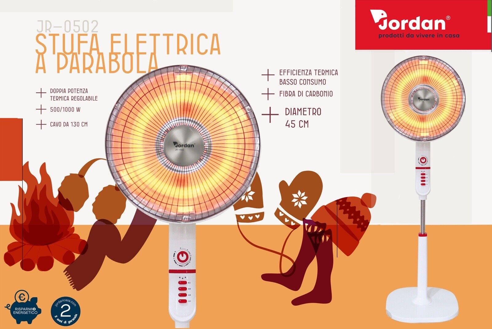 Stufa Elettrica a Parabola in Carbonio Oscillante Jordan JR-0502 45cm Base ampia 500/1000w