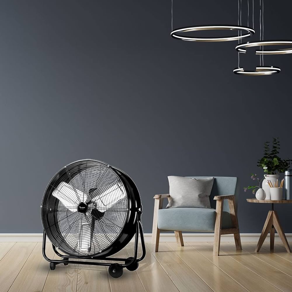 Ventilatore industriale da pavimento 190W - V60D1 Ventilatore industriale da pavimento dalle dimensioni : 77x72x20 cm, ed un diametro da Ø 70cm. Potenza da 190W e motore il filo di rame pieno 100%. Due velocità regolabili e la possibilità di avere una massima efficienza senza rumori grazie al funzionamento silenzioso. Inoltre la base tipo “U” dalle dimensioni 72×20 cm e le due ruote con maniglia rendono l’utilizzo pratico e semplice. Oscillazione regolabile ma con massima stabilità grazie alla base solida. Lunghezza cavo 1,8m per garantire un facile spostamento nell’area da ventilare, spina VDE.