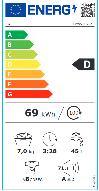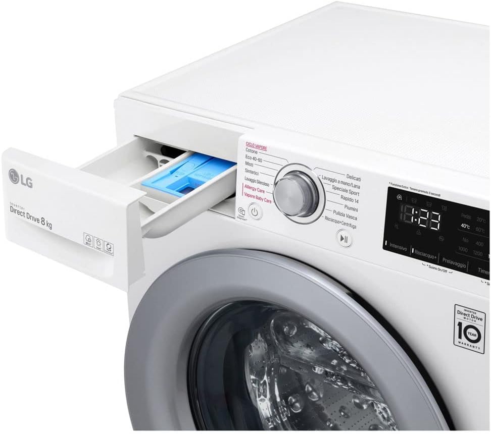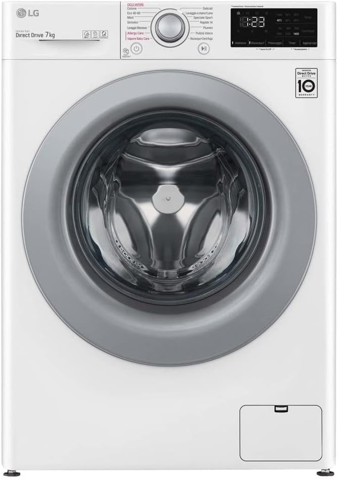 LAVATRICE SLIM LG CARICO BIANCHERIA 7 kg, CLASSE D, VELOCITA CENTRIFUGA 1200 GIRI LAVAGGIO VAPORE, MOTORE INVERTER