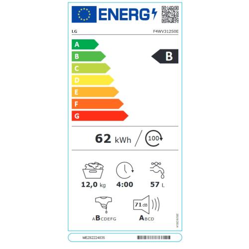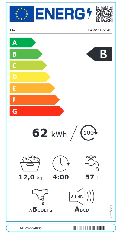 Consumo energetico ponderato in kWh /100 (per 100 cicli, programma Eco 40-60) 62