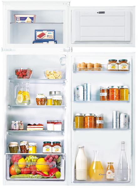 frigo 2 porte incasso sistema frigo statico capacità totale 225 lt. capacità frigo 182 lt. capacità freezer 40 lt. classe energetica "A+" frigo 4 stelle congela 2 kg. in 24 ore consumo energia 254 kWh/anno rumorosità 39 db autonomia black-out 11 ore classe climatica n / st frigo sbrinamento automatico freezer sbrinamento manuale porta reversibile 4 ripiani in vetro 1 cassetti apertura destra peso netto 47,5 kg. larg. 54 alt. 144,4 prof. 54 cm.