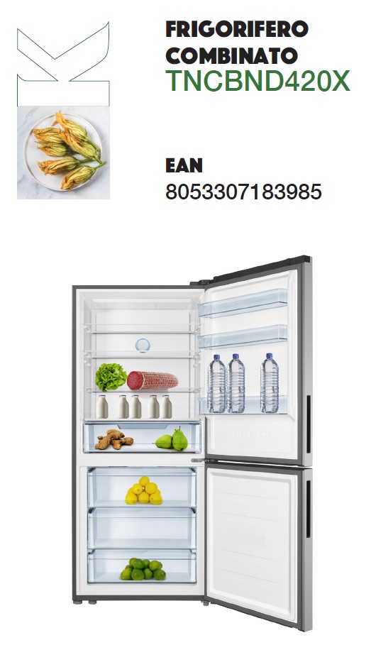 Frigorifero NIKKEI COMBI, 420 LT, Classe efficienza energetica E, No Frost, Colore Inox, 185x70,3x67