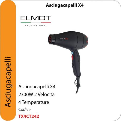 Asciugacapelli compatto e potente Elmot X4 è un phon professionale con sistema Tormalionic che elimina l'elettrostaticità dei capelli.