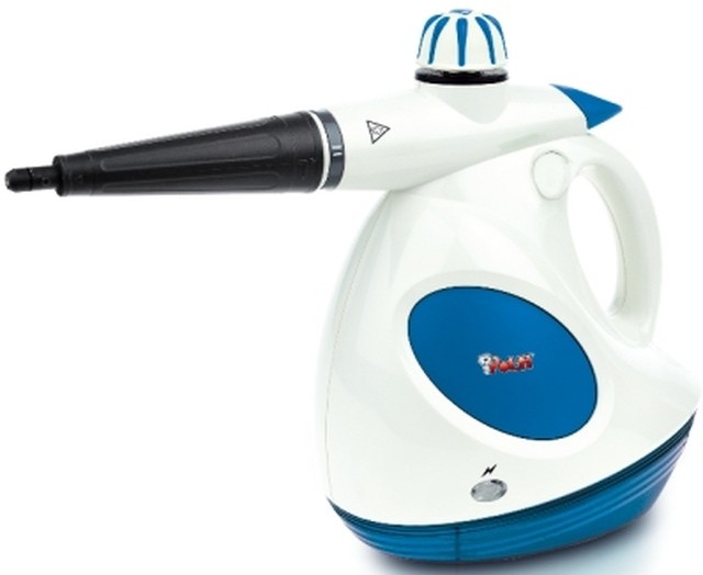 pulitore a vapore potenza 1000 watt pressione massima 3 bar capacità serbatoio 0,2 lt. emissione vapore 40 g/min spia pronto vapore tappo di sicurezza acc. spazzoline varie colore bianco-blu peso netto 1,7 kg. larg. 34,5 alt. 28,3prof. 18,3 cm.