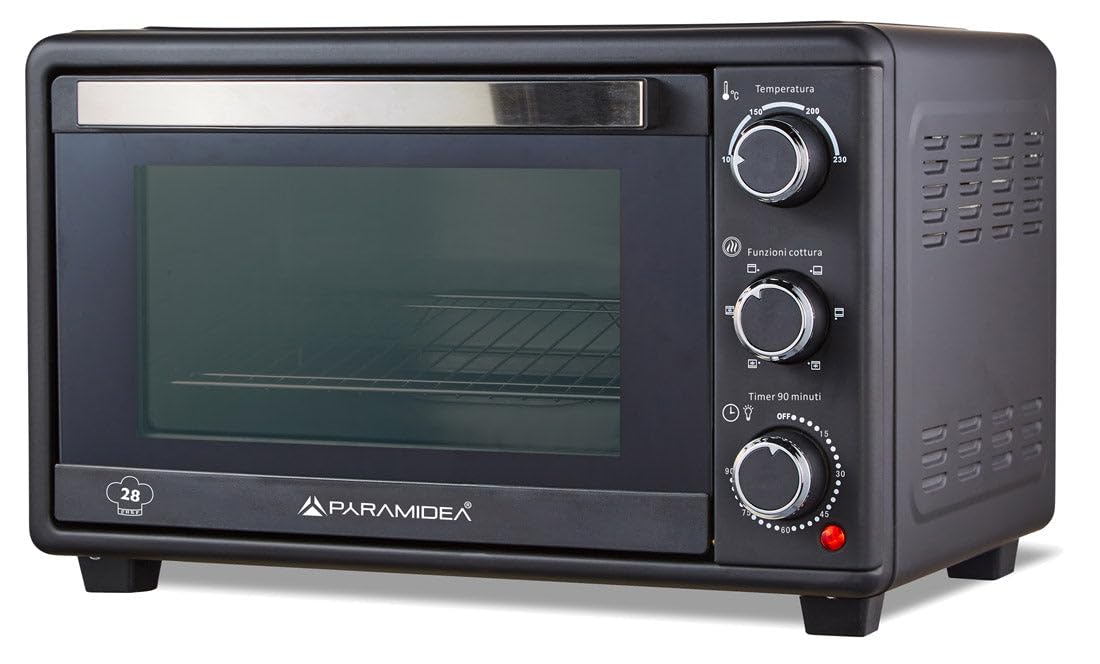 PYRAMIDEA, in dotazione, fornisce le proprie teglie, in allumino, e le proprie griglie in acciaio inox. La struttura delle griglie previene il deterioramento dopo il lavaggio, garantendo un uso duraturo. Un forno piccolo ma super efficiente per la propria abitazione. Certificazione Europea A13