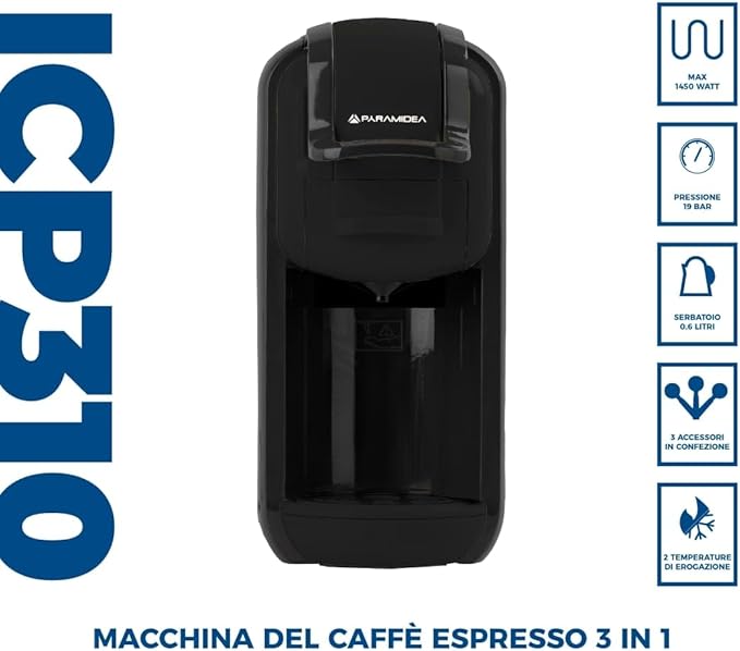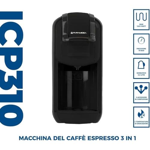 Pyramidea macchina caffe' 3 in 1 nespresso, dolce gusto e cialde nera