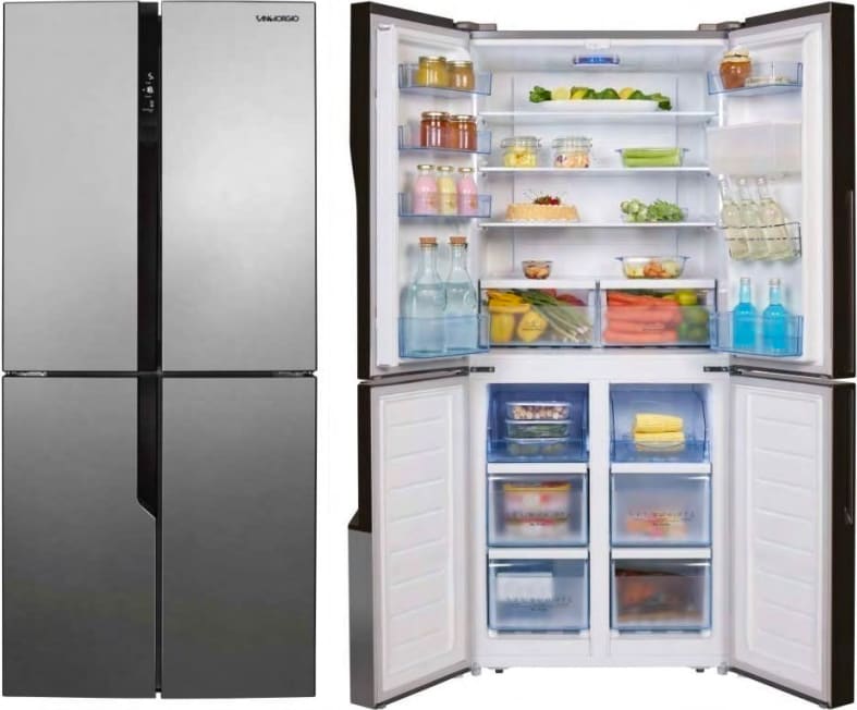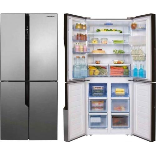 frigo combinato 4 porte sistema frigo no frost sistema freezer no frost capacità totale 509 lt. classe energetica "A+" termometro esterno funzione vacanza frigo sbrinamento automatico freezer sbrinamento automatico 4 ripiani in vetro congelatore 6 cassetti sicurezza bambini colore acciaio inox