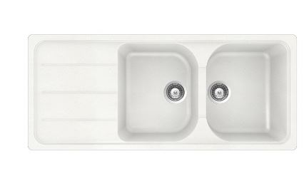 Schock Formhaus D200 NERO Cod FOMD100A01 Cristalite. Lavello due vasche con gocciolatoio. Dimensioni: 1160x500. Foro: 1140x480. Pilette da 3"1/2 Sifone salvaspazio Sigillante