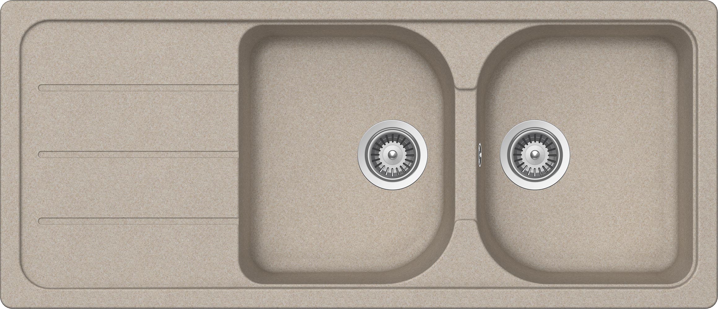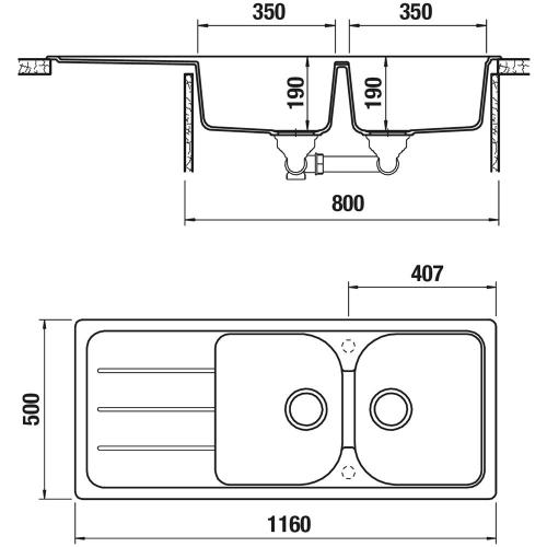 Schock Formhaus D200 AVENA Cod FOMD100A58. Cristalite. Lavello due vasche con gocciolatoio. Dimensioni: 1160x500. Foro: 1140x480. Pilette da 3""1/2 – Sifone salvaspazio – Sigillante