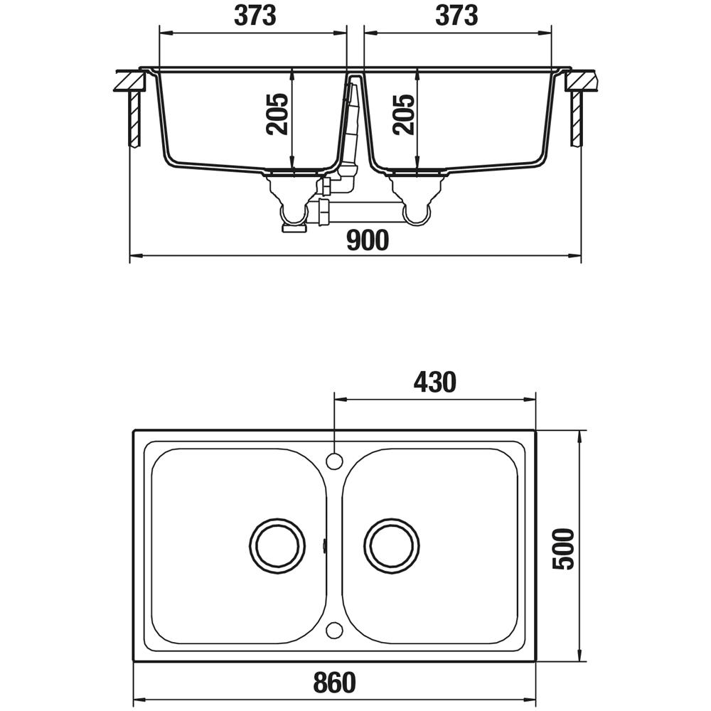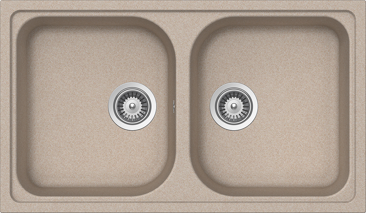 Schock Formhaus N200 AVENA Cod FOMN200A58. Cristalite. Lavello due vasche. Dimensioni: 860x500. Foro: 840x480. Pilette da 3""1/2 – Sifone salvaspazio – Sigillante
