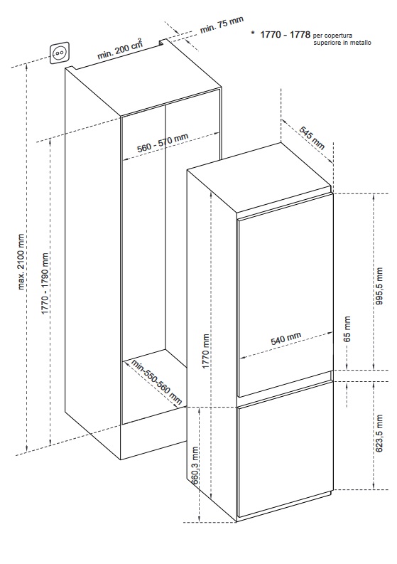 Frigorifero: Capacità: 181 L, Sistema di raffreddamento ventilato, Allarme temperatura, Sbrinamento Automatico, Ripiani in cristallo temperato, 1 cassetto verdure,1 cassetto MaxiFresh Preserver, Griglia portabottiglie, Controporta modulabile