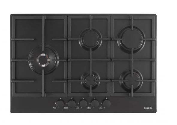 Schock STR85THBK Piano cottura a gas cm. 75, 5 fuochi, colore nero opaco