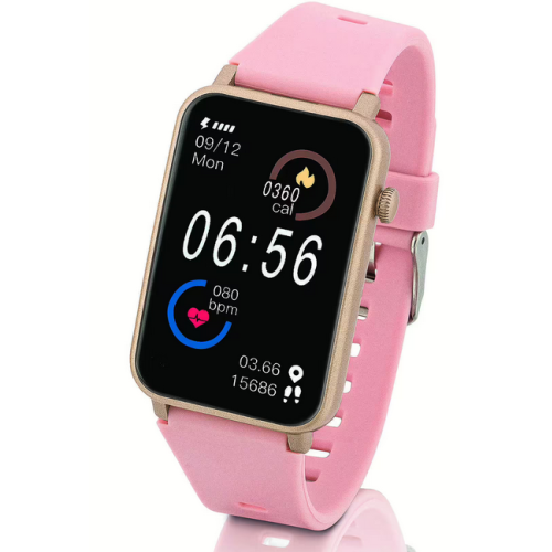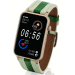 Smartwatch da uomo di TecnoChic della collezione tc-l17. La cassa è di colore oro rosa. Il primo cinturino è realizzato in eco pelle beige con riga verde, il secondo in silicone rosa. Le funzioni sono: monitoraggio accurato temperatura corporea, battito cardiaco, pressione e ossigenazione sanguigna, monitoraggio step giornalieri, analisi riposo notturno, notifiche chiamate e social, sveglia, avviso sedentarietà, registrazione sessioni allenamento. La referenza è tc-l17-02