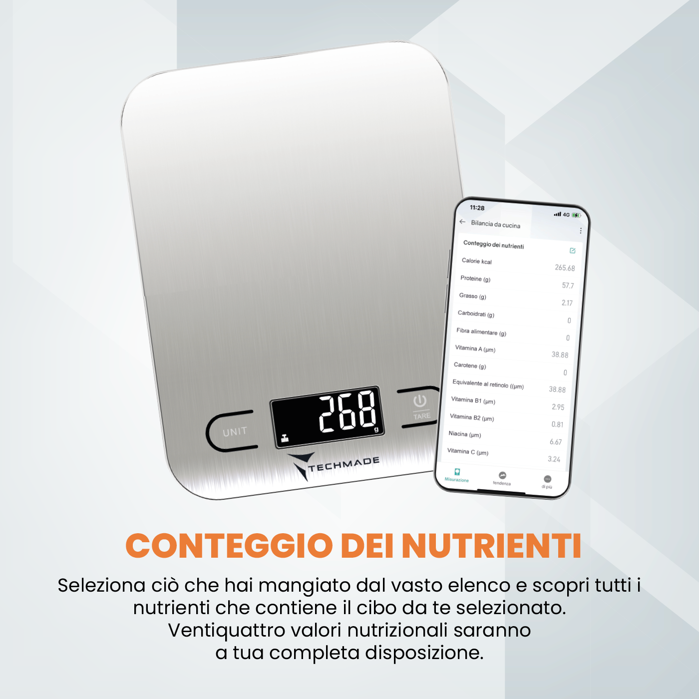 | Calcolo valori nutrizionali | In App sarà possibile calcolare 24 valori nutrizionali degli alimenti |