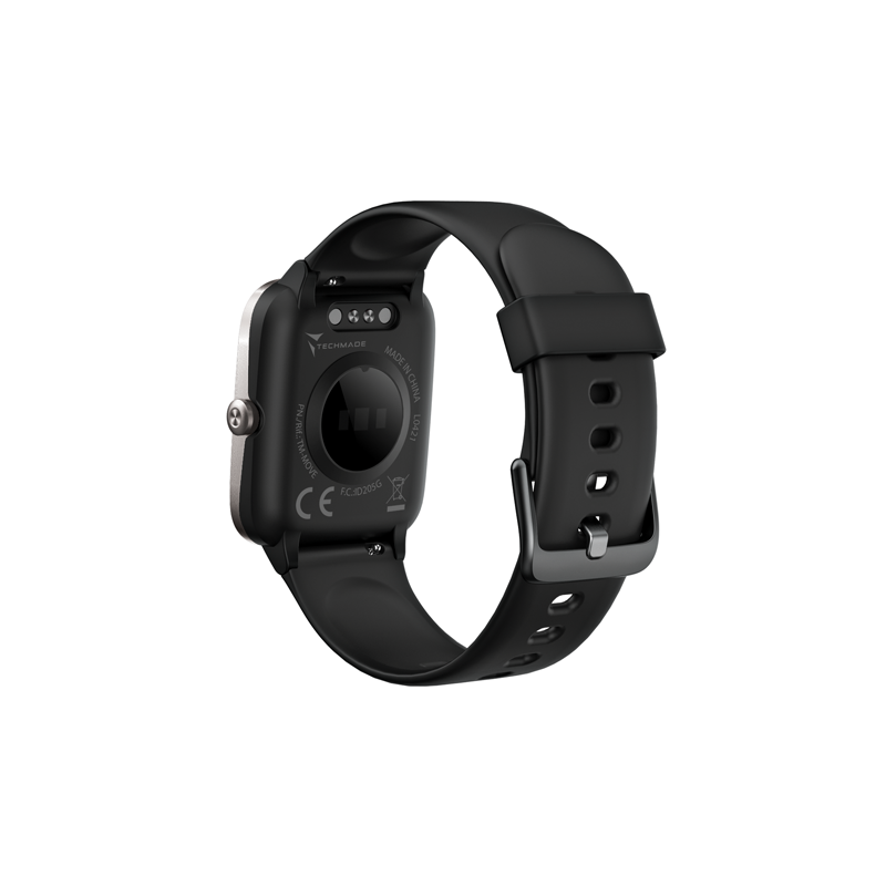 Orologio Unisex della marca Tech Made, il Meccanismo realtek8762dk permette le seguenti Funzioni: Avviso alla Chiamata. GPS, Conta Passi, Wrist sense, Conta Calorie, Distanza, Cronometro, Freq. Cardiaca, Pressione sanguigna, Ossigenazione, Timer, Sleep monitor, Sveglia, Sedentary reminder, Sport, Avviso bere, Music remote contol, Meteo,Comando Scatto Fotocamera, Ricerca smartphone, Sfondo personalizzabile. La distanza massima di comunicazione è 10 metri. La cassa è quadrata e misura 38 mm × 40 mm × 10.7 mm in resina nera. Il Display è 1.3” Color full touch. Il cinturino è in gomma nera, il vetro è minerale, la corona Logata è a pompaggio, la chiusura è placchetta di scorrimento, la resistenza all'acqua è IP68 paragonabile a un 3 ATM da NON tenere immerso per PIù di 30 minuti.