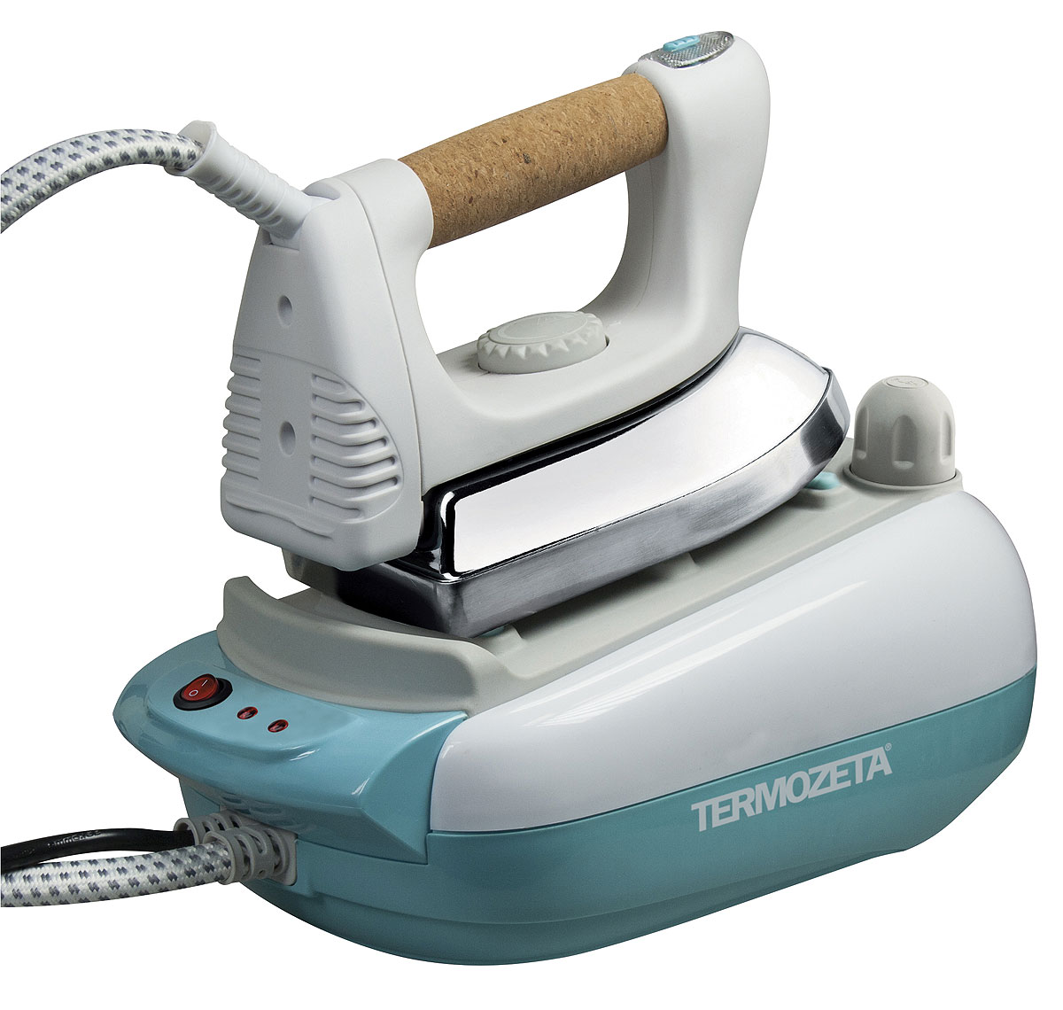 - Macchina da stiro con ferro di tipo professionale con manico in sughero