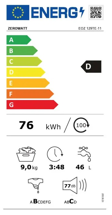 Lavatrice ZEROWATT - Carica frontale Libera installazione (FS) Capacità 9 Kg Centrifuga max 1200 Giri Classe energetica D - 16 programmi