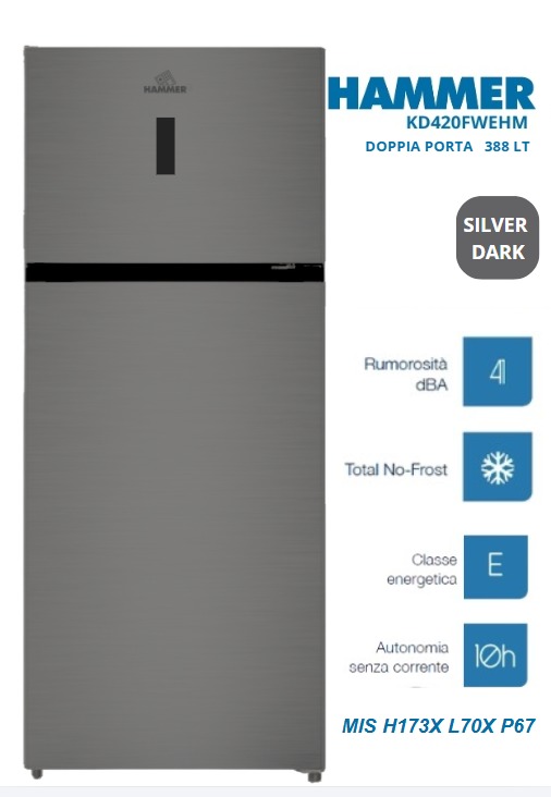 FRIGORIFERO DOPPIA PORTA DARK SILVER 388 LT